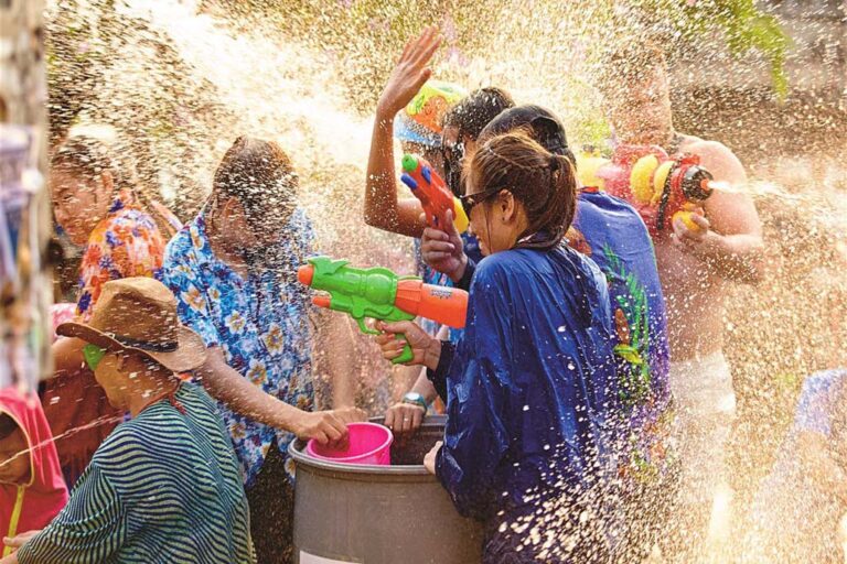 Songkran (mi-avril) – Le Nouvel An thaïlandais, célèbre pour ses batailles d’eau géantes, ses rites de purification dans les temples et son atmosphère de fête dans toute l’île.