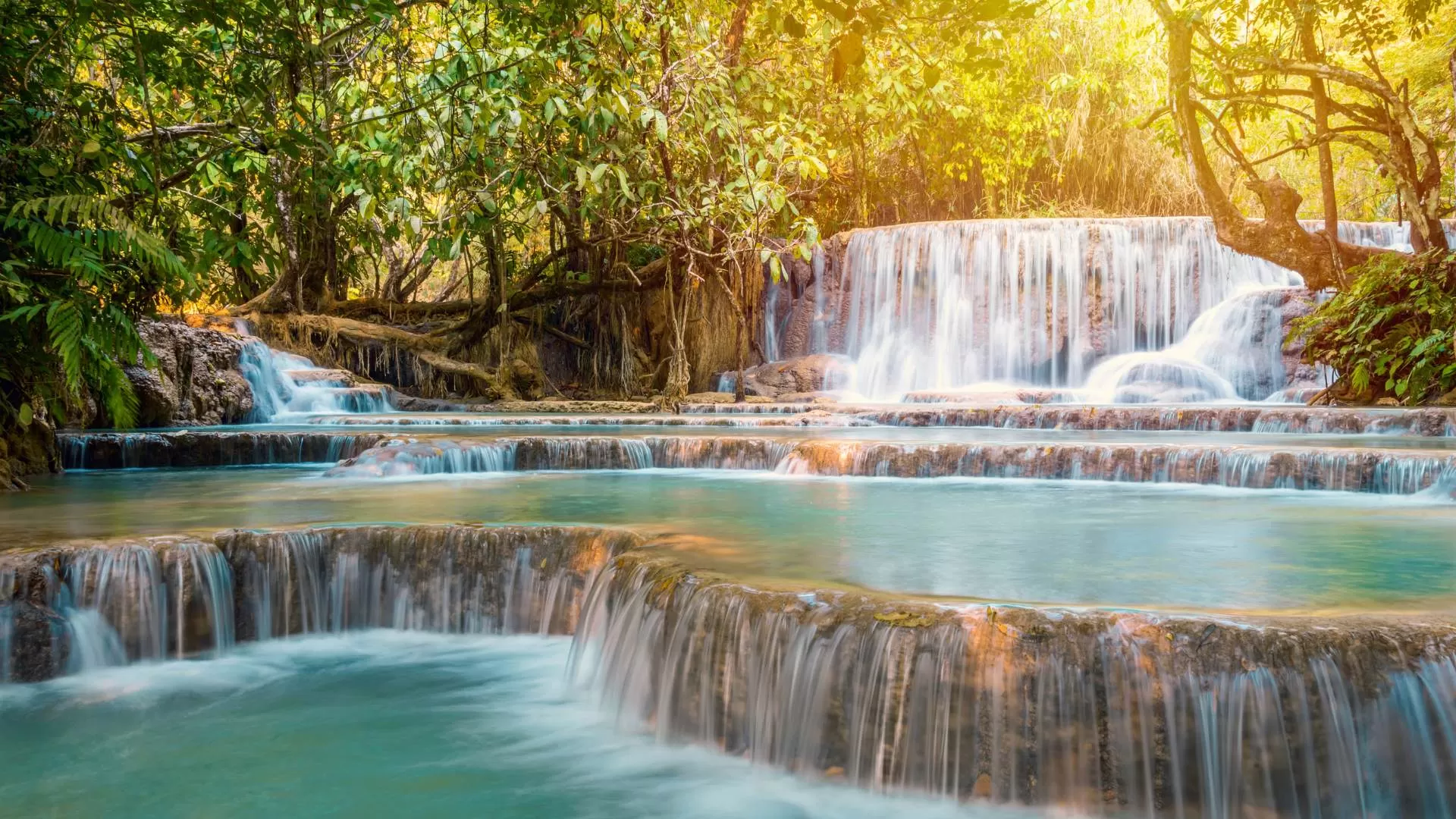 Visiting Kuang Si Falls at peak flow