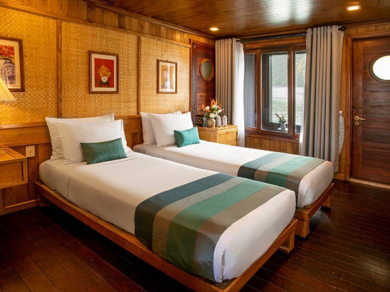Cruise on the Bhaya Legend Premium Sharing delivers a luxurious and private Halong Bay cruise experience, perfect for families, small groups, or travelers looking for a more exclusive escape. Each vessel hosts just 3 to 5 cabins, creating a serene and uncrowded atmosphere while allowing guests to discover both famous sights and secluded corners of the bay.